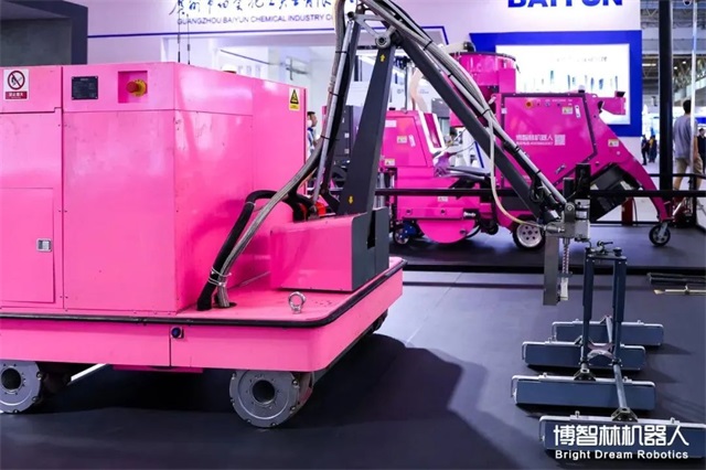 本次參展的建筑機器人有主體結構階段的機器人搭檔:布料機器人、地面整平機器人,雙機聯動在高強度混凝土澆筑階段實現了降本增效、提升質量、降低勞動強度等技術革新目標。