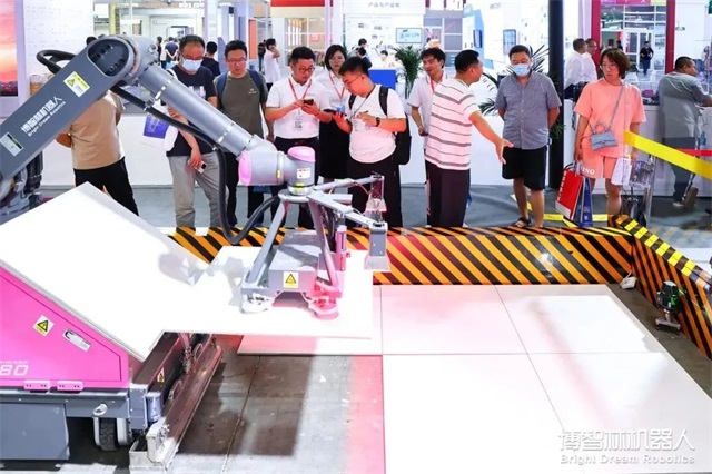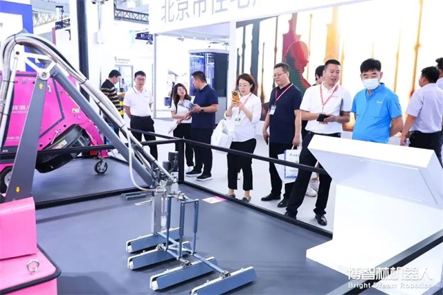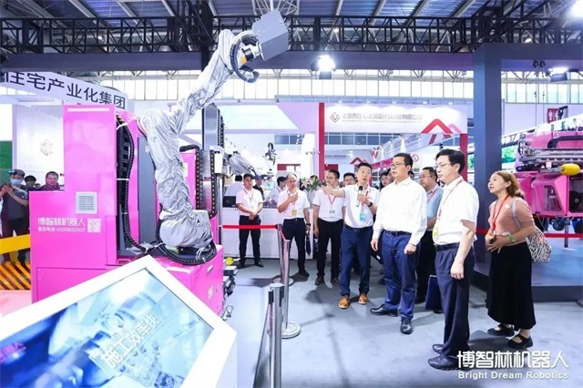 現場,許多行業專家蒞臨博智林展位現場,近距離體驗建筑機器人的實操作業,了解博智林機器人發展與應用情況,共同探討建筑行業智能建造新道路。