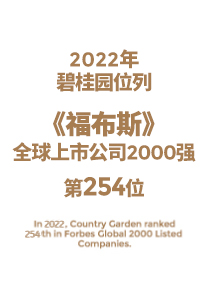 In 2022, Country Garden ranked 254th in Forbes Global 2000 Listed Companies.