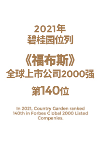 In 2021, Country Garden ranked 140th in Forbes Global 2000 Listed Companies.